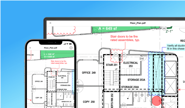 Collaborate in real time via your web browser or mobile device (including iPads and tablets). No need to install Revu first — simply pick up and mark up.