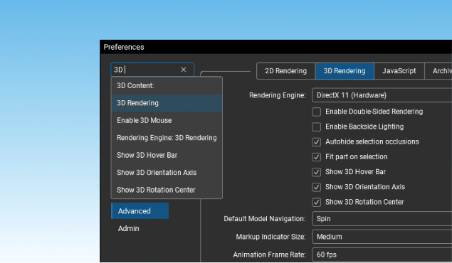 Get relevant feature information in Revu without interrupting your work. Quickly locate features and options with new search feature in Preferences.