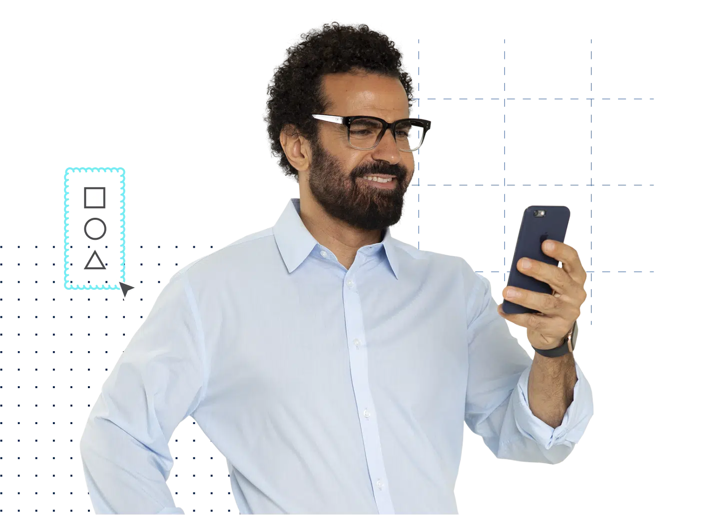 ボタンダウンシャツで眼鏡をかけ、モバイルデバイスを見る男性建築家