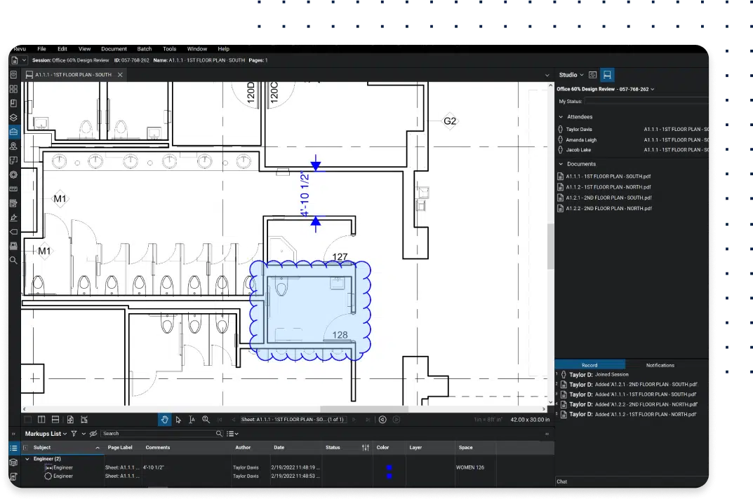 Invite team members to mark up and measure documents in real time from anywhere. All changes are tracked in the Markups List, allowing for faster, more accurate and thorough reviews.