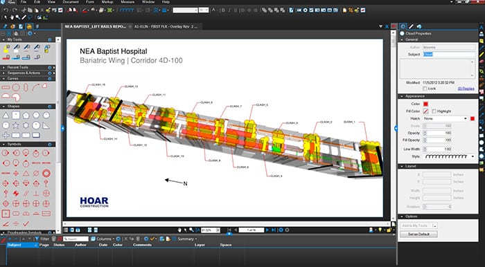 Trey Darnell, BIM Coordinator at Hoar Construction, has also noticed that the use of Revu has spread across project team members who are quickly seeing the benefits of using the solution to digitize communication. “Revu’s functionality and ease of use have made it an easy sell for us in the field,” aid Darnell. For example, a plumbing subcontractor with over 30 years of industry experience realized how easily he could layout all of his drawings and specifications using Revu. Although he had been relying on traditional pen and paper processes for years, within one week’s time he had transitioned over to the digital format, saving 60% of the time typically spent drawing and scaling. “Not only has Revu helped us communicate issues faster on the NEA Baptist Memorial Hospital Project, it has enabled us to improve communication with our subs and deliver value to them. We anticipate that Revu will continue to help us work faster, smarter and without limits,” added Wright.